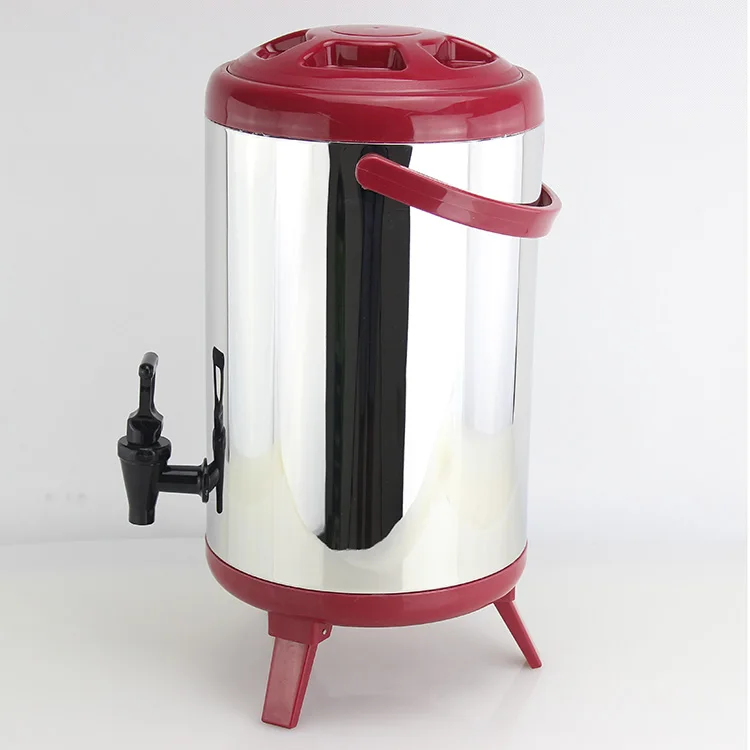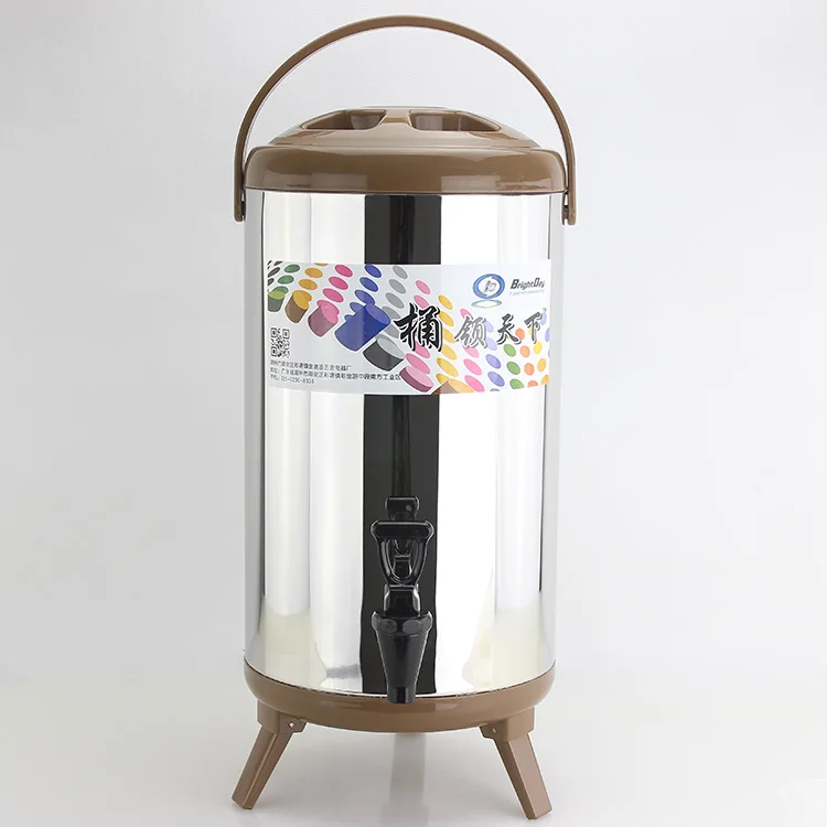 10L Stainless Steel Metal Heat Preservation Barrel Heat Insulation Bubble Tea Bucket with Tap for Milk Tea Drink Dispensers