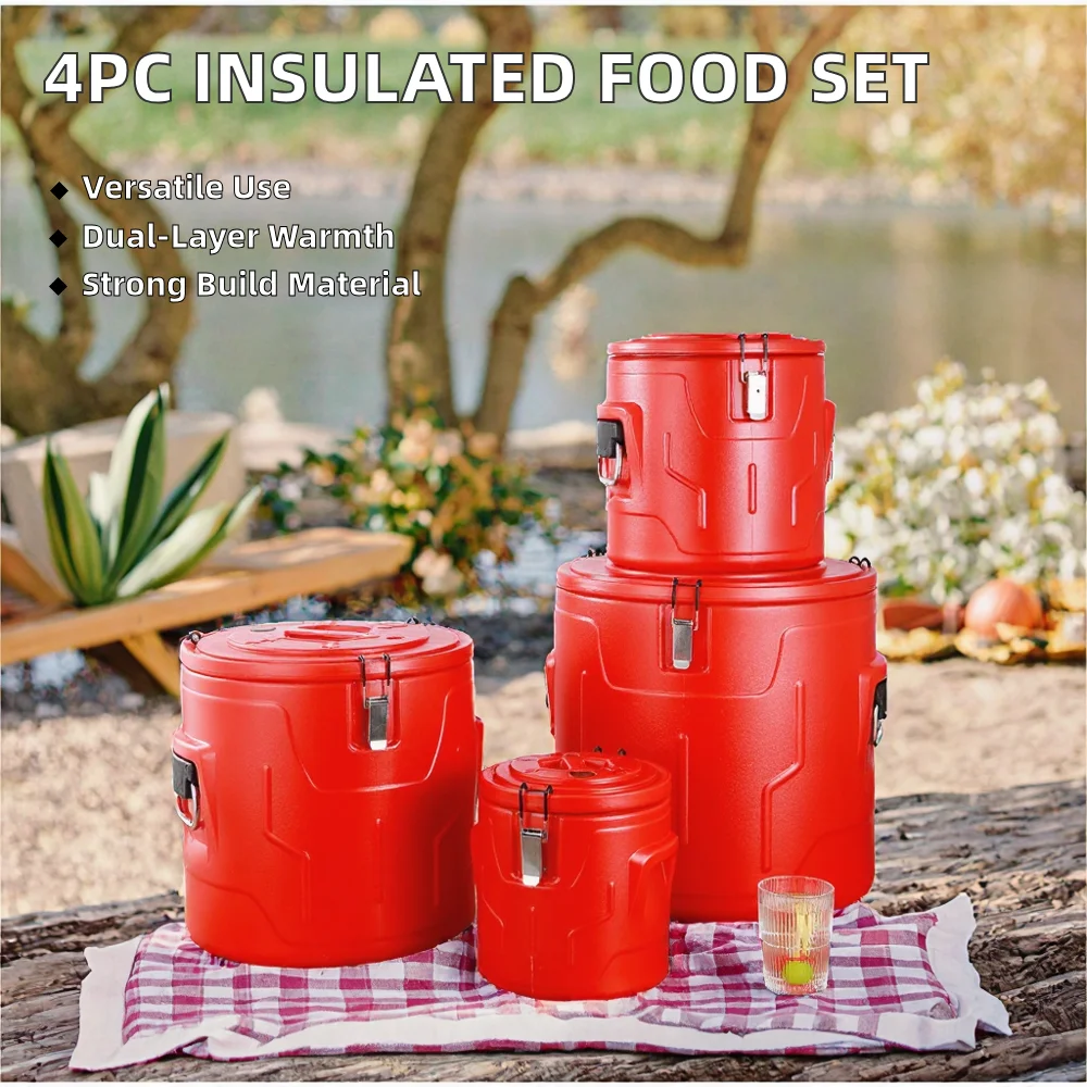 4pcs Set Stainless Steel Insulated Bucket Double-Layer Restaurant Food Storage Warmers Outside Cooler