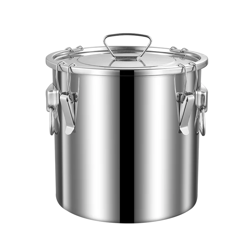 Airtight Soup Bucket Milk Can Large Capacity Food Storage Bucket for Bean Flour Stainless Steel Storage Pot with Lid Lock Clips