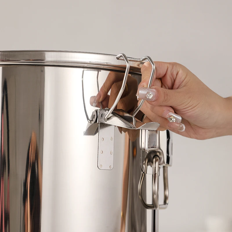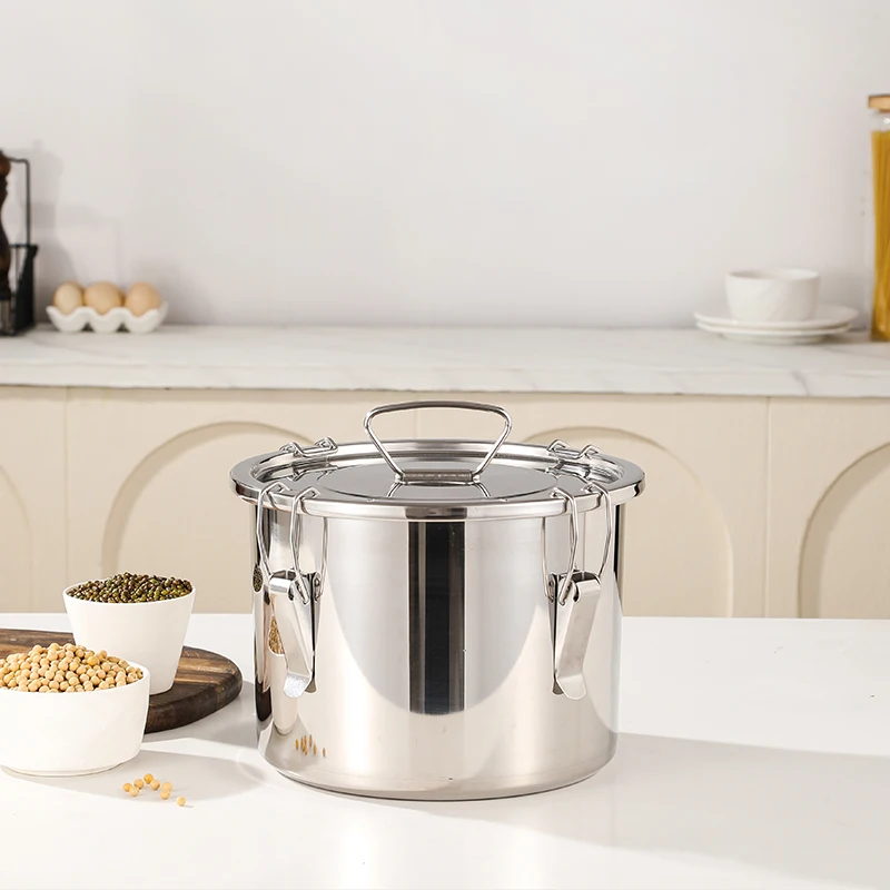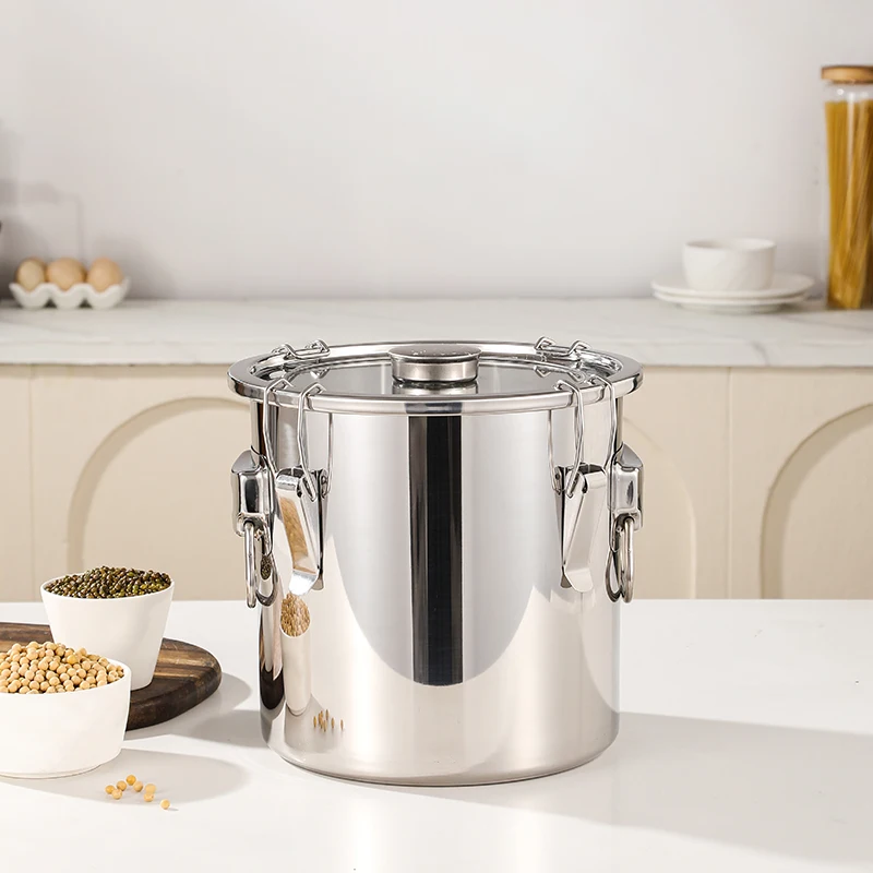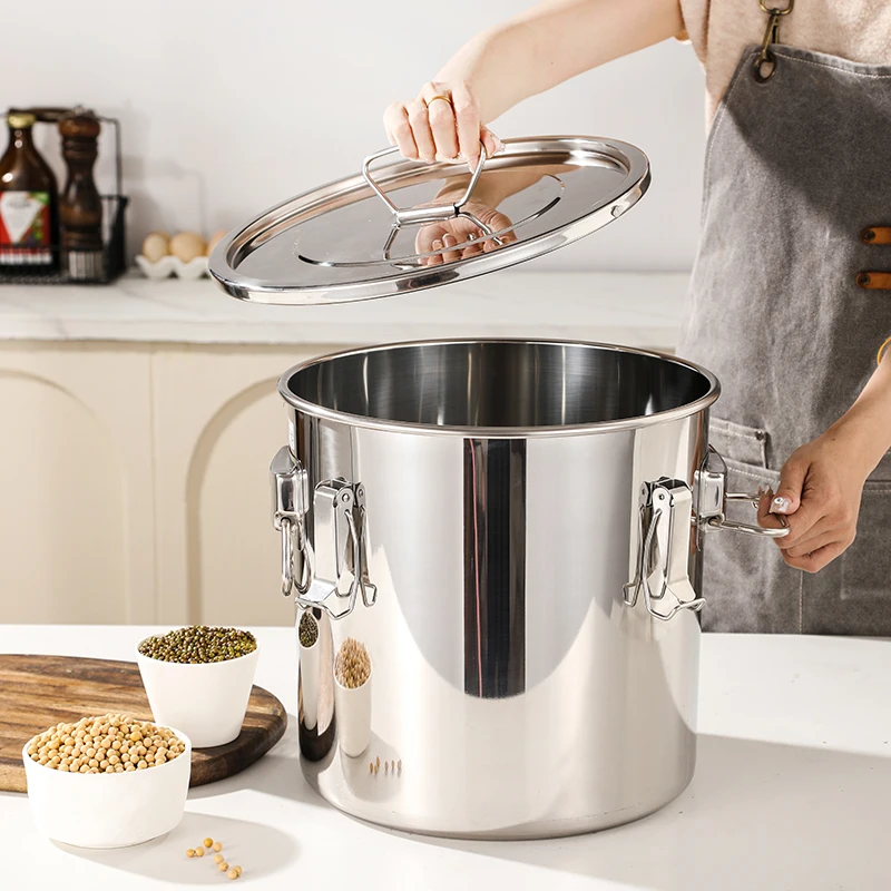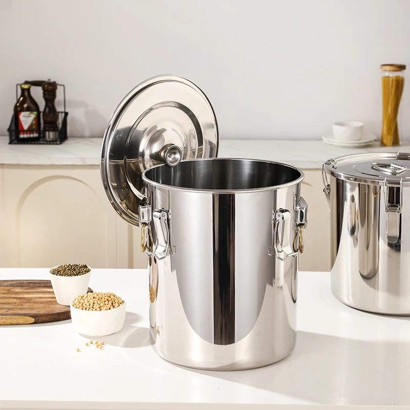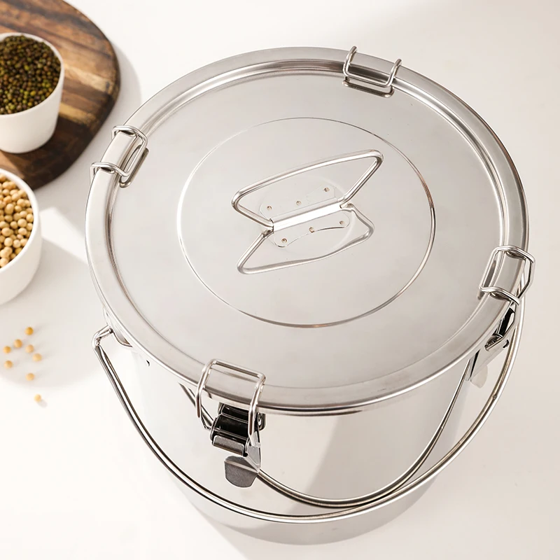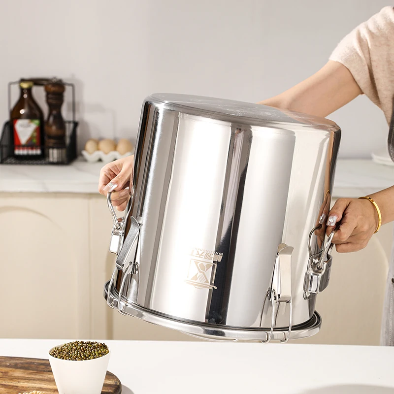 Airtight Soup Bucket Milk Can Large Capacity Food Storage Bucket for Bean Flour Stainless Steel Storage Pot with Lid Lock Clips